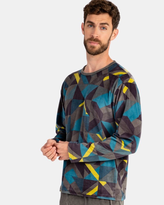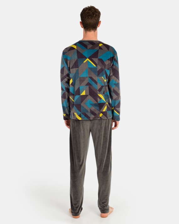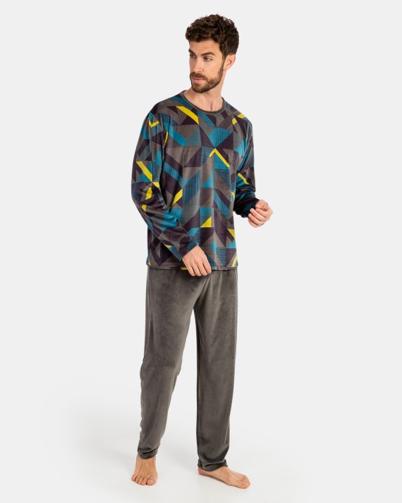 Pijama en tejido de punto micro polar. Compuesto por camiseta tipo sudadera estampada, manga larga y cuello redondo. Pantalón también en tejido micro polar color gris con cinturilla elástica.Información de lavadoComposición100% POLIÉSTER